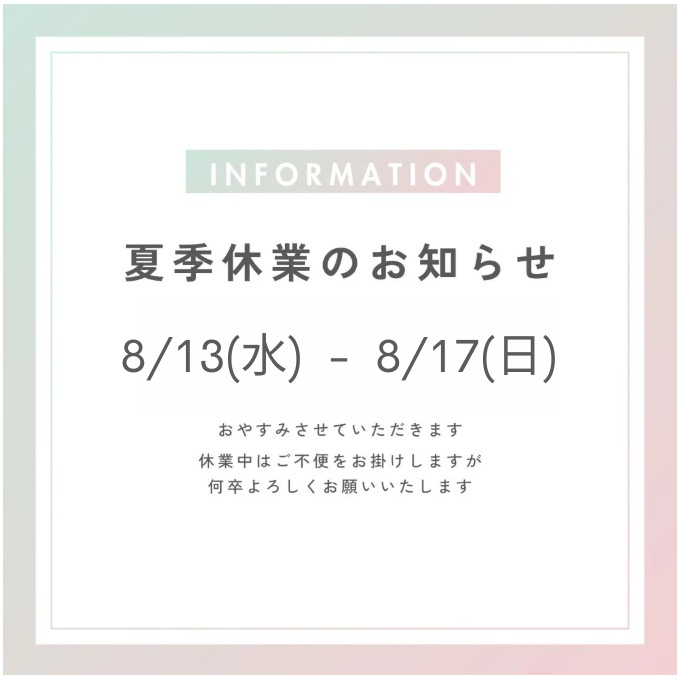 SAIRAI公式サイトでは、下記の期間を 夏季休業とさせていただきます🌿